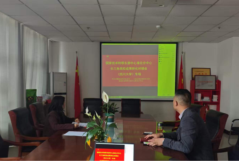 4月20日下午,濉溪县科技局联合国家技术转移东部中心淮北分中心,以线上形式举办高校成果转化对接会(四川大学专场)。濉溪县科技局局长人选任影、四川大学高分子研究院副研究员殷鸿尧、安徽巨成精细化工有限公司及国家技术转移东部中心淮北分中心相关负责人参会。